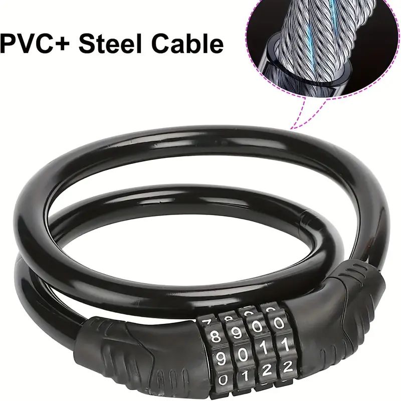 Combination Bicycle Steel Cable Lock - digit Wrapped Safety Resettable Steel Cable Lock for Mountain Bike, Road Bike, Electric Bike, Scooter Anti-theft Lock quantity
