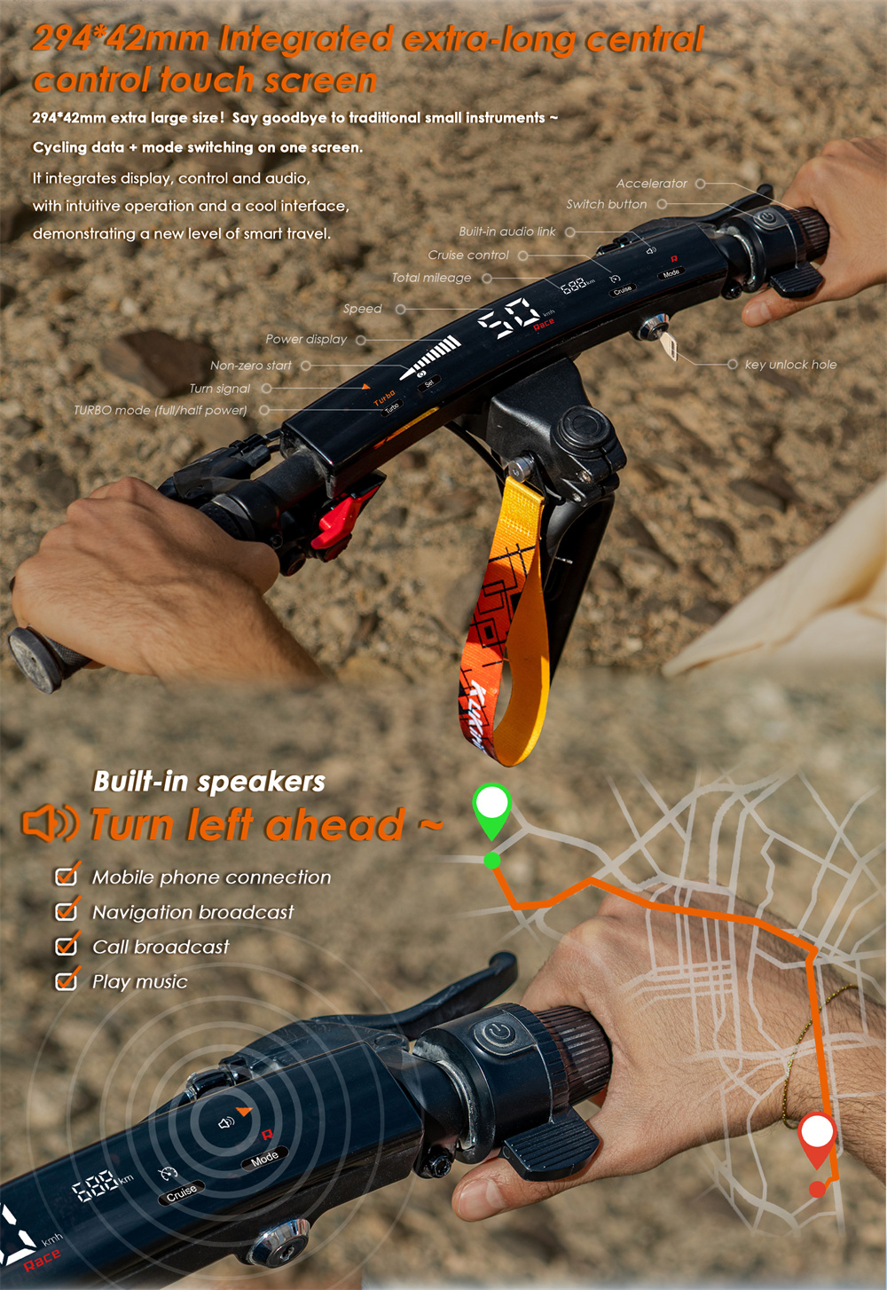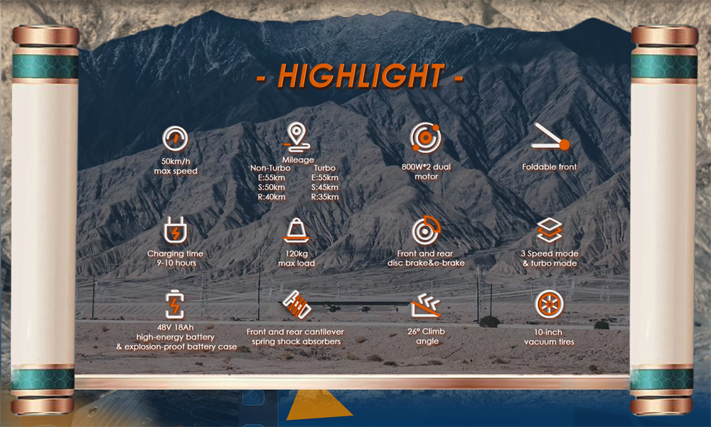 Non-Turbo mode battery life: E≤55km, S≤50km, R≤40km (Fully charged until the battery is exhausted with 75kg load in km) |