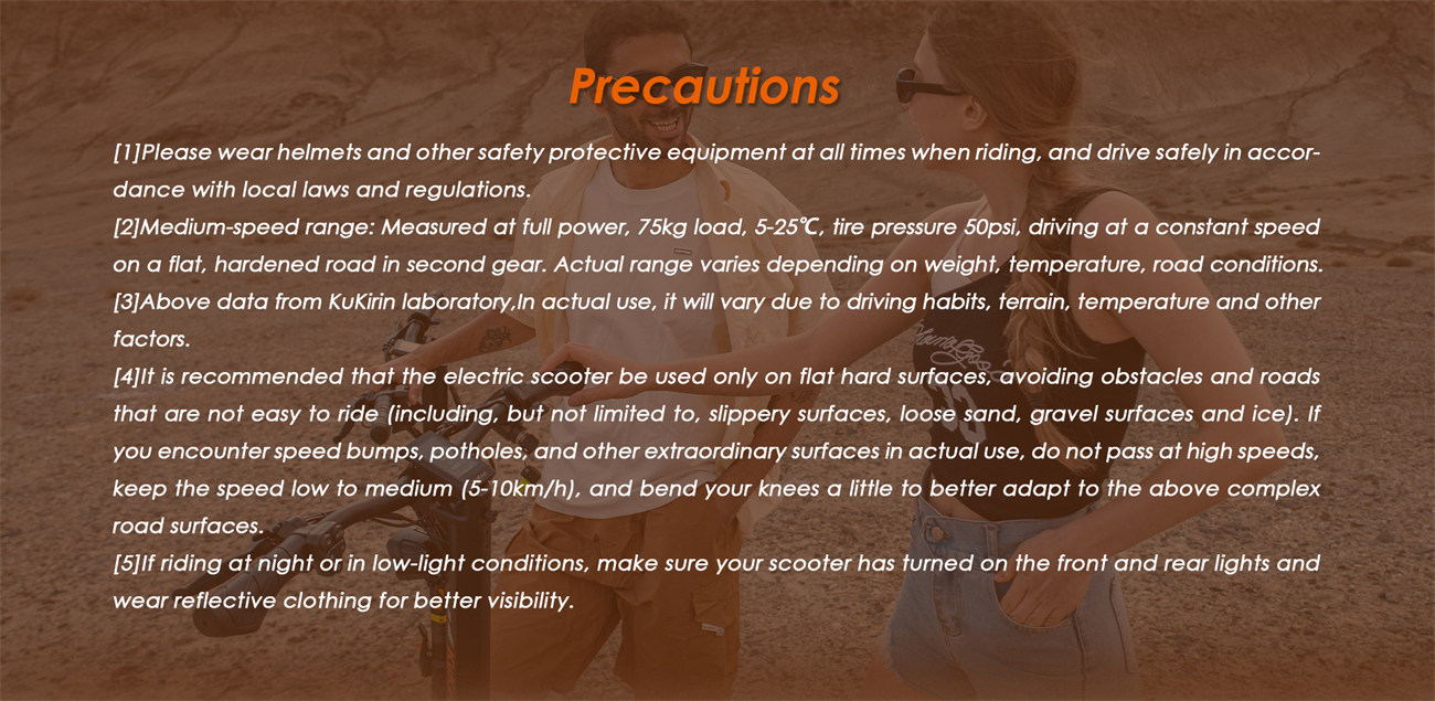 | Instrument | Type: LED Display Material: Display cover is ABS Size: 97*55mm Show Content: Speed/power/mileage/cruise control/speed mode/start mode/light mode/mileage unit modeFunction Setting: 1. Power button: Press for 3 seconds to turn on/off, Press once to turn on/off the headlights + spotlights + taillights, Press twice in a row to switch between single mileage and total mileage; Press and hold the brake + press 6 times in a row to release/restore the speed limit. (Note: When the signal is triggered, the buzzer beeps and the brake handle is released.)2. RGB button: Press for 3 seconds to turn on the ambient light, Press once again to switch the lighting effect of the ambient light. There are 4 modes in total. (When the signal is triggered, the buzzer will beep.)3. M button: Press once to cycle the gear, Press 3 times in a row to switch between kilometers/miles, Press 4 times in a row to turn on/off the cruise control, Press 5 times in a row to switch between zero start/non-zero start mode. (When the signal is triggered, the buzzer will beep.) 4. and right turn signals: |