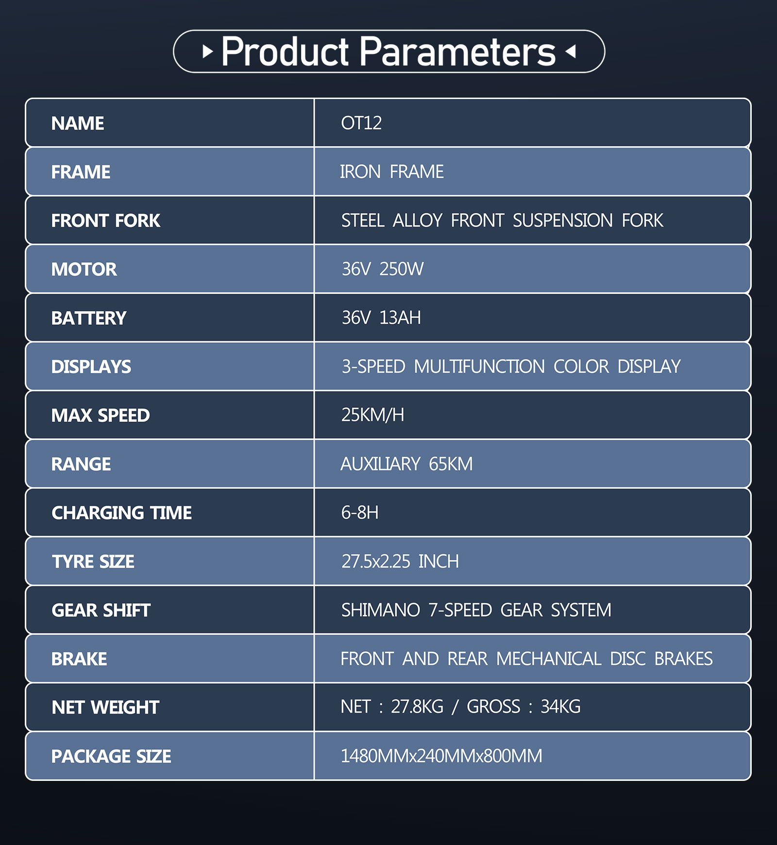 | OT12 E-Bike Specifications | |